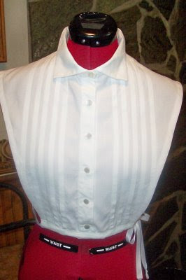 I purchased 2 of these. They are mock shirts - called a chemise or a dickey in the 70's. They are completely open on the sides and tie about the waist with a ribbon. Well as you can see in the bottom photograph, mine slipped even though it was still very tight after my show.